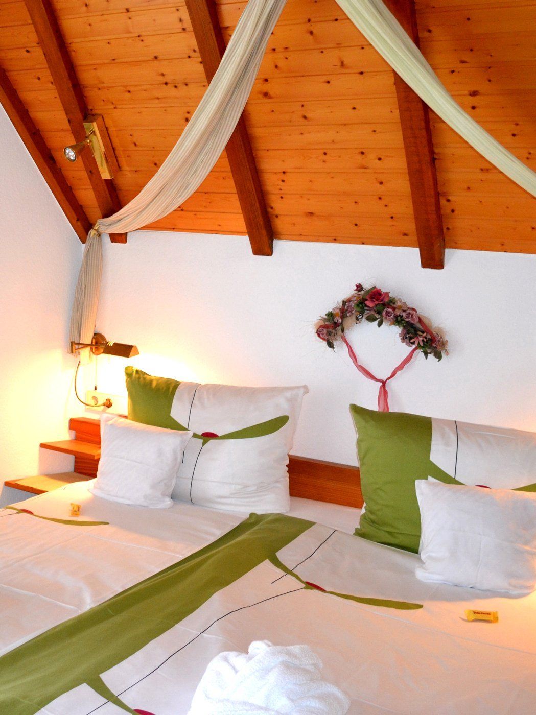 Maisonette/Suite mit Schlafzimmer auf der Empore, schöne offene Galerie und exklusivem Badezimmer mit zwei eingebauten Waschbecken. Die Wohnung ist liebevoll eingerichtet im romantischen Stil, mit außergewöhnlichem Flair und anspruchsvollem Komfort...